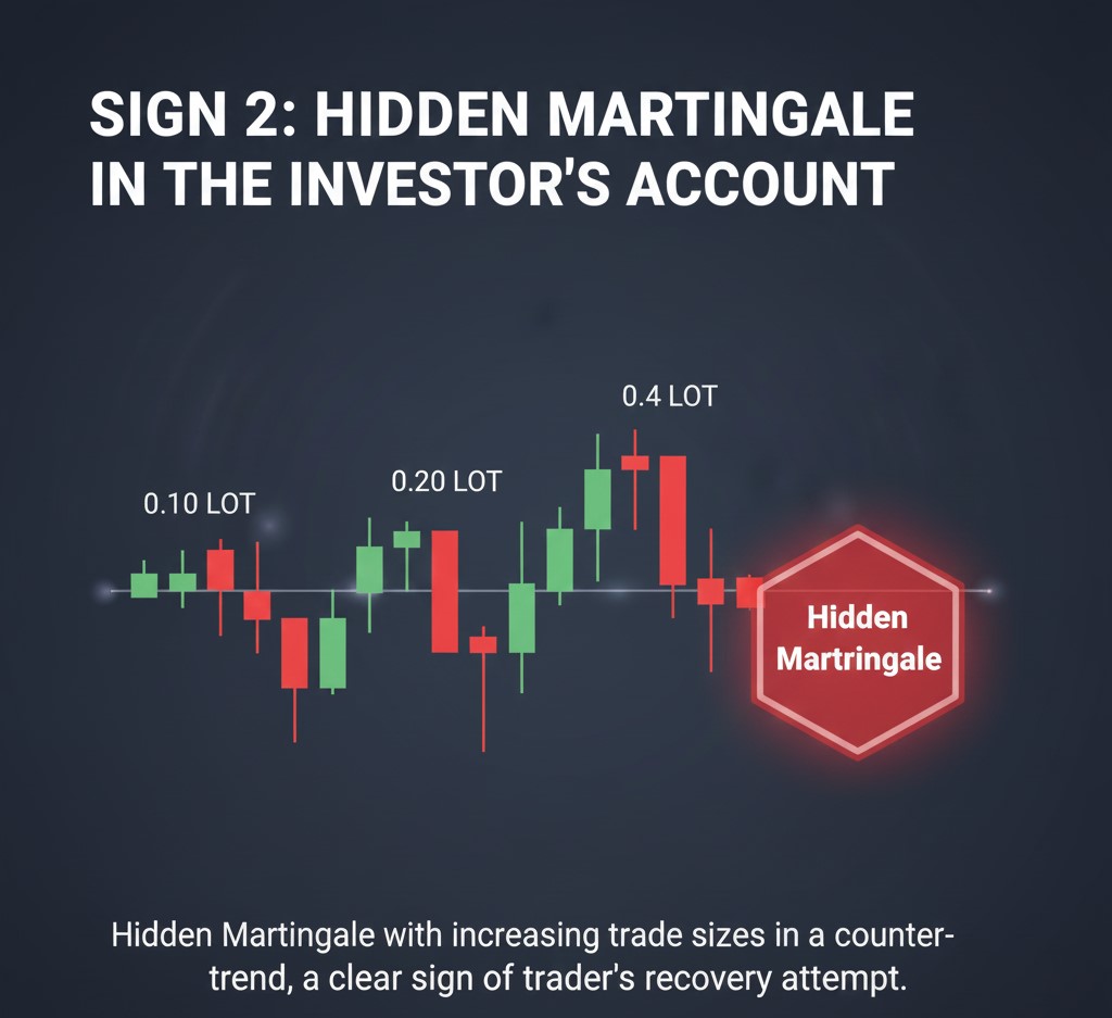 اگر دیدی تریدر روی EURUSD یک معامله باز کرد، بعد دوباره همان معامله را باز کرد ولی بزرگتر، بعد دوباره بزرگتر…
