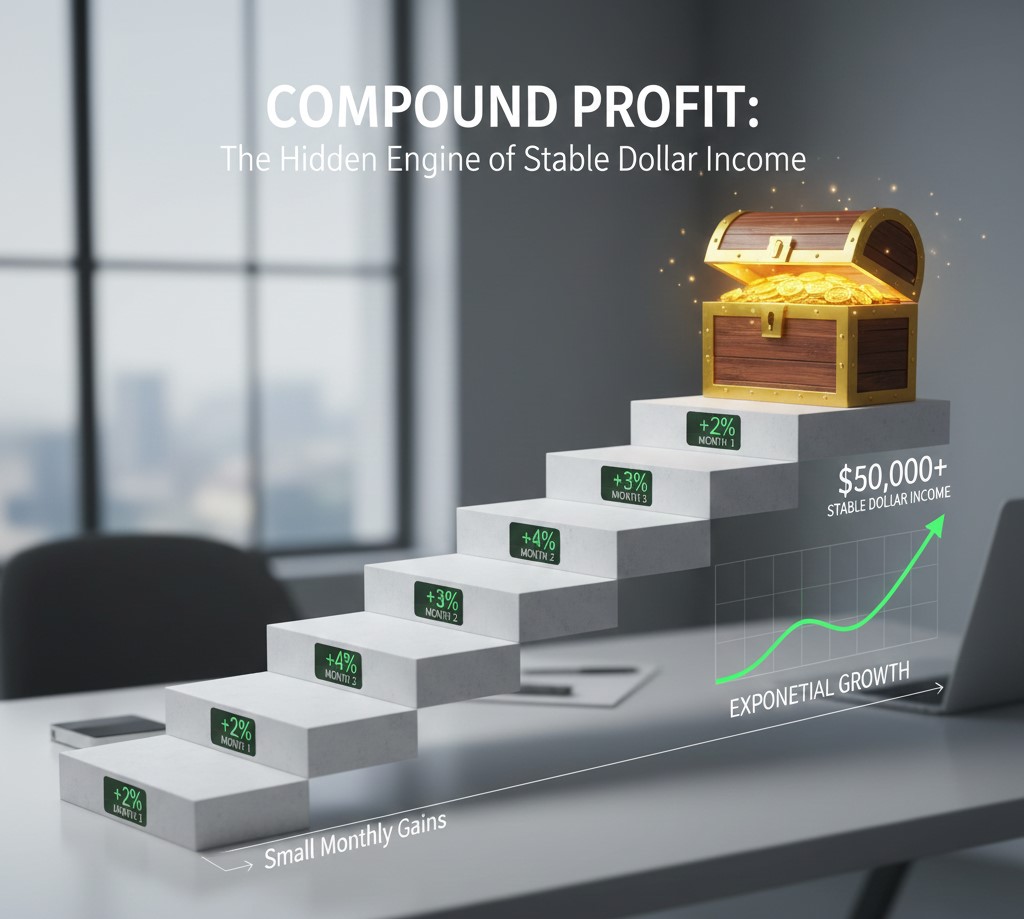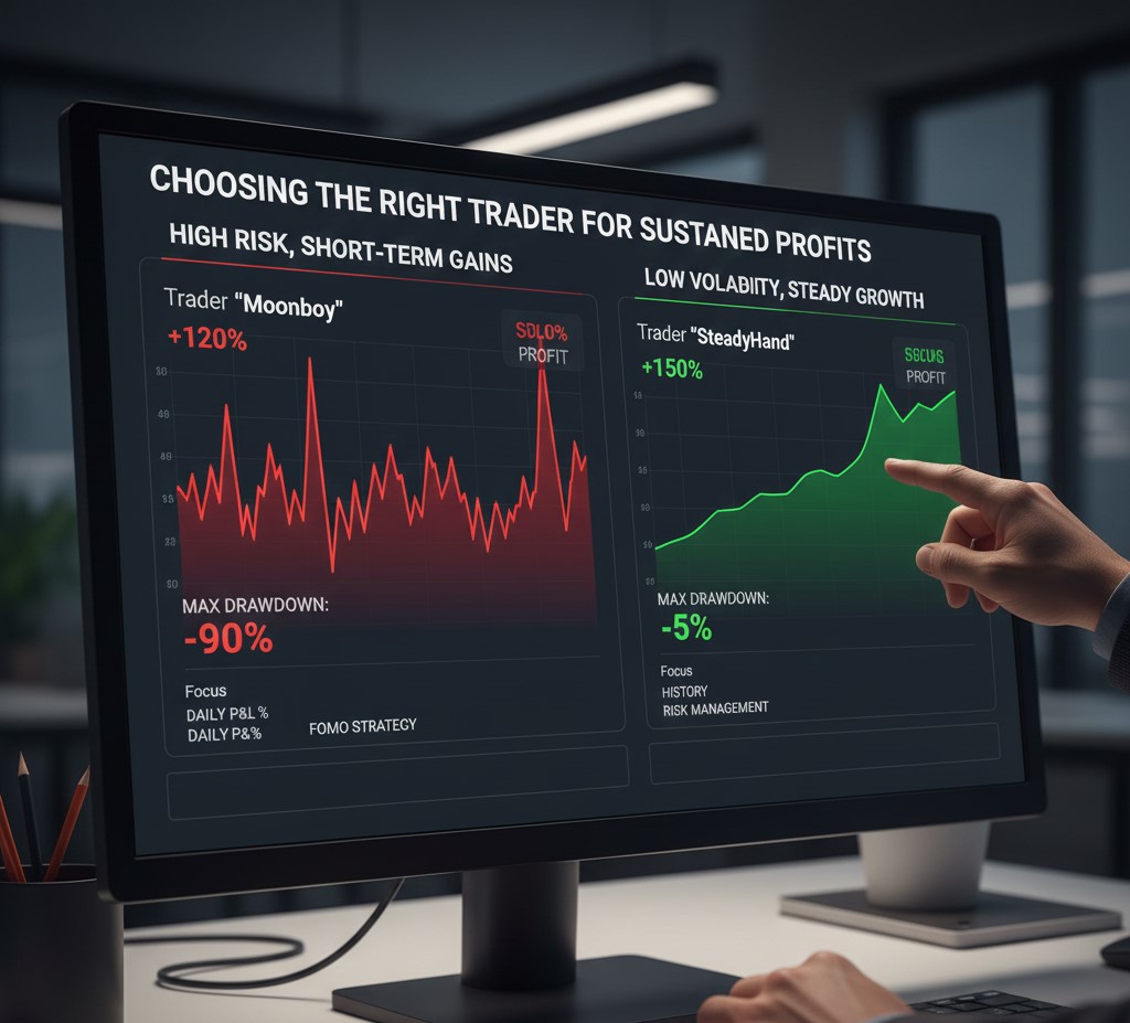 کاربری که ماهانه ۳ تا ۵٪ سود میگیره، بعد از چند ماه ناامید میشه و تریدرش رو عوض میکنه. اما همون تریدر اگر یک سال بدون وقفه دنبال میشد، میتونست سود مرکب قابلتوجهی بسازه؛ دقیقاً همون چیزی که خیلیها هیچوقت تجربهاش نمیکنن.