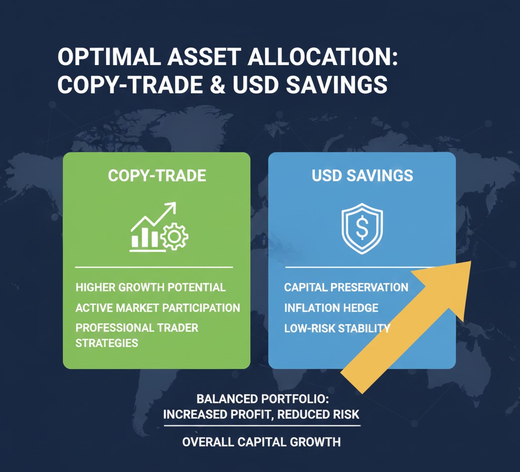 فرض کن فردی با ۵۰۰۰ دلار سرمایه وارد بازار شده. بهجای اینکه کل مبلغ را درگیر معاملات کند، ۶۰٪ را در کپیترید با مدیریت ریسک منطقی قرار میدهد و ۴۰٪ را بهعنوان پسانداز دلاری کنار میگذارد. نتیجه؟ حتی اگر بازار وارد فاز نوسانی شود، فشار روانی به حداقل میرسد و تصمیمهای عجولانه کمتر میشوند.