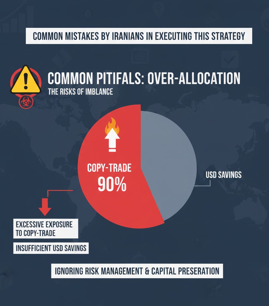 بزرگترین اشتباه این است که فکر کنیم کپیترید یعنی سود تضمینی. همین ذهنیت باعث میشود کل سرمایه وارد بخش پرریسک شود. در حالی که استراتژی ترکیبی دقیقاً برای جلوگیری از همین طرز فکر طراحی شده است.