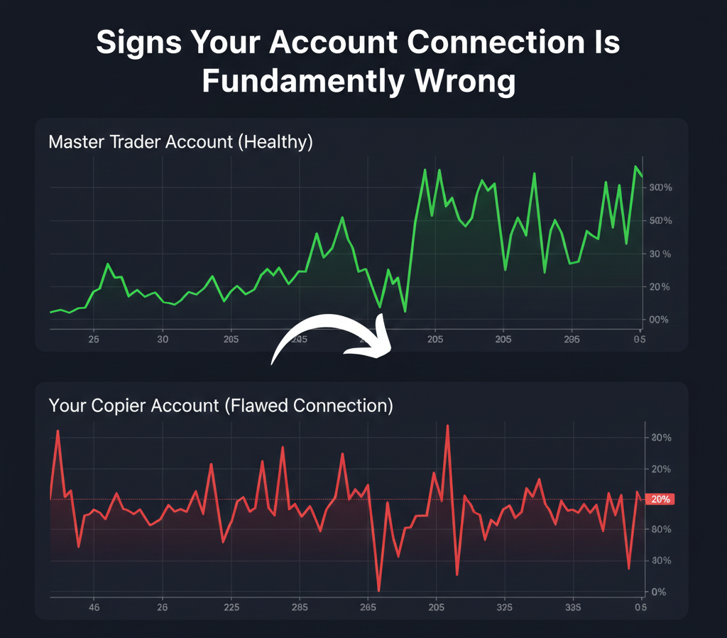 عدم همخوانی تنظیمات حساب کپیکننده با ساختار حساب تریدر