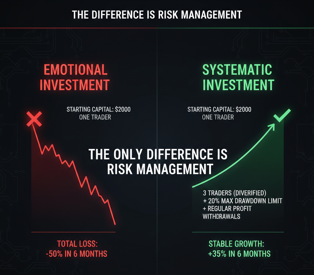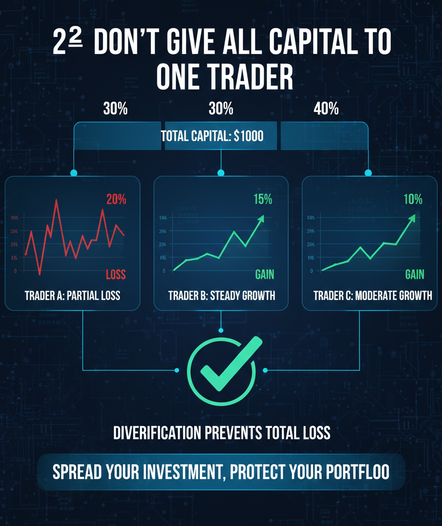 2️⃣ همه سرمایه را به یک تریدر نده