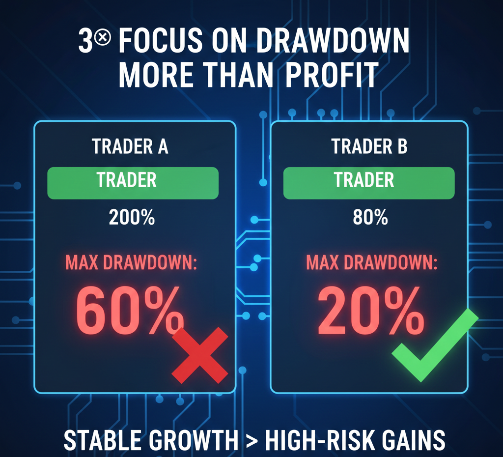 3️⃣ به Drawdown بیشتر از سود توجه کن