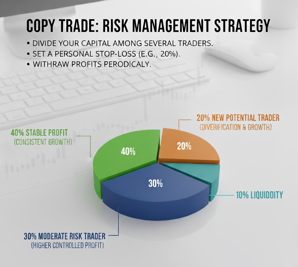 کپی ترید به معنای «رها کردن همه چیز به دست یک تریدر» نیست. اگر بدون استراتژی مدیریت ریسک جلو بری، دیر یا زود سرمایت در خطر میافته.