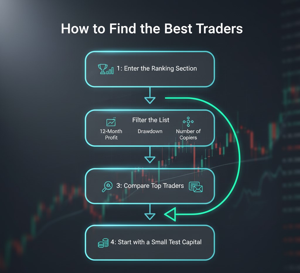 ۳. چند تریدر برتر را انتخاب و عملکردشان را مقایسه کنید.