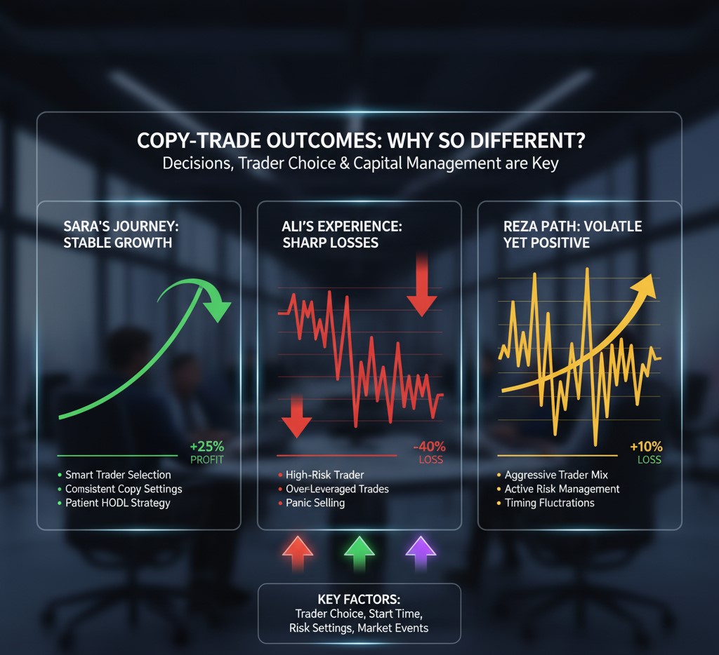 نتایج کپیترید کاملاً به انتخاب تریدر، مدیریت ریسک و انتظار سرمایهگذار بستگی داره.