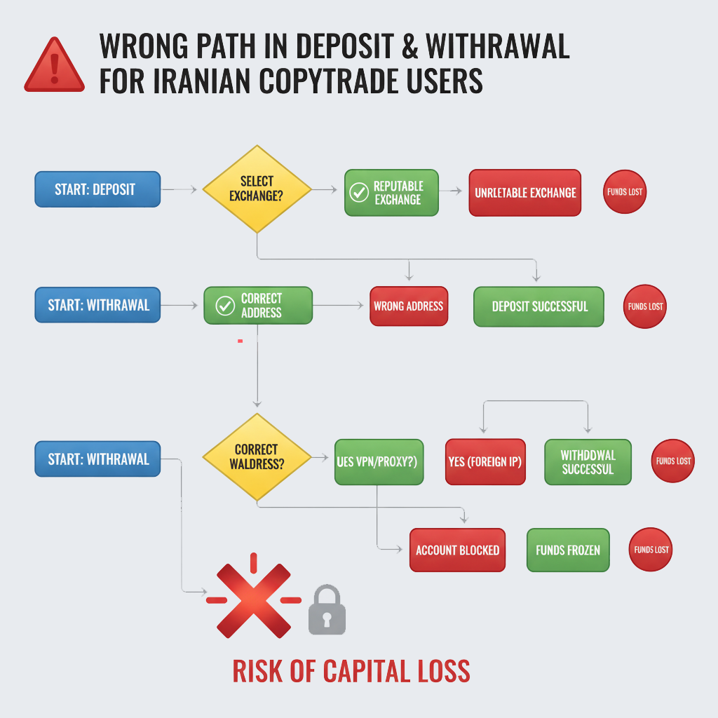 💡 طبق تجربه کاربران، بیش از ۶۰٪ مسدودیها به خاطر «واریز از مسیر اشتباه» اتفاق میافته، نه به خاطر ترید.
