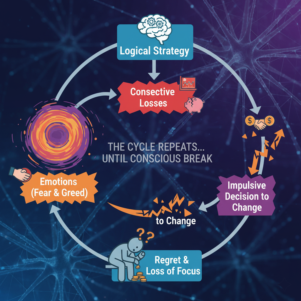 این چرخه بارها در ذهن تریدرها تکرار میشود تا زمانیکه آن را آگاهانه بشکنی.